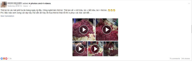 Mới đây, cư dân mạng liên tục truyền tay nhau một loạt 4 đoạn clip ngắn (mỗi clip dài chưa đến 1 phút) ghi lại công nghệ "hô biến" thịt lợn sề thành thịt bò. Cách làm khá đơn giản: chỉ cần thái vụn thịt lợn sề giống hệt cách thái thịt bò, thái lẫn một chút mỡ trâu, bò sau đó phần mỡ này được trộn với một chút tiết trâu, bò cho lên màu giống hệt thịt bò sau đó trộn chung với thịt lợn sề, tạo thành một thứ hỗn hợp được gọi tên bằng thịt bò.