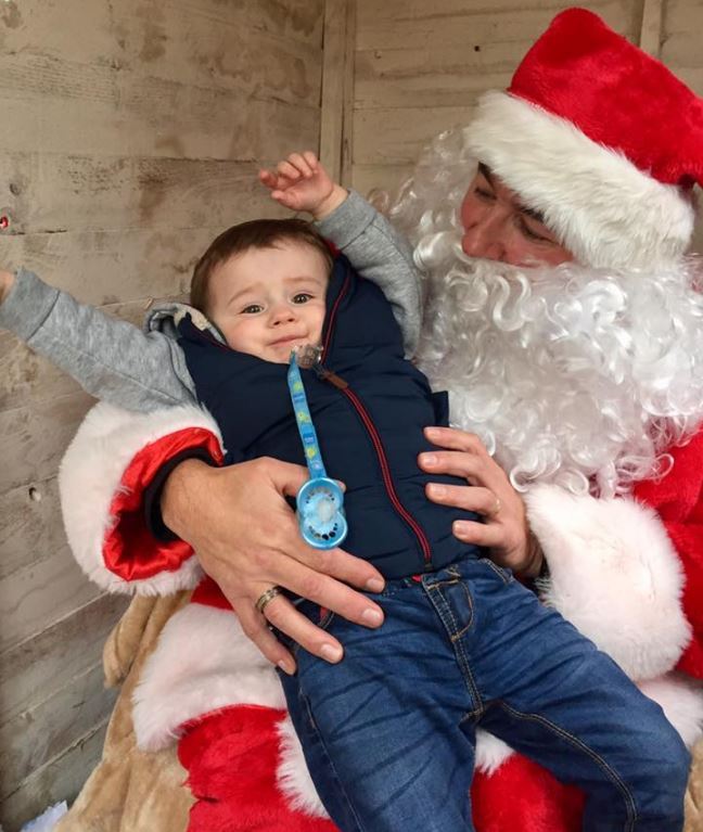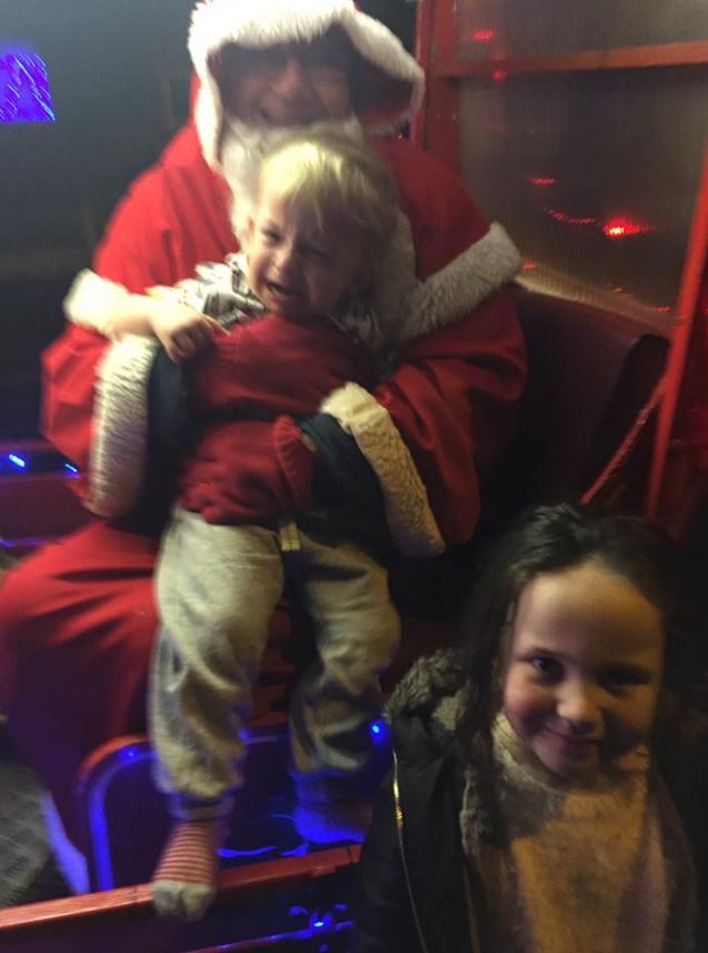 Adam Bradbury, 18 tháng tuổi và em gái Annabel Walsh gặp ông già Noel tại một hội chợ Giáng sinh.