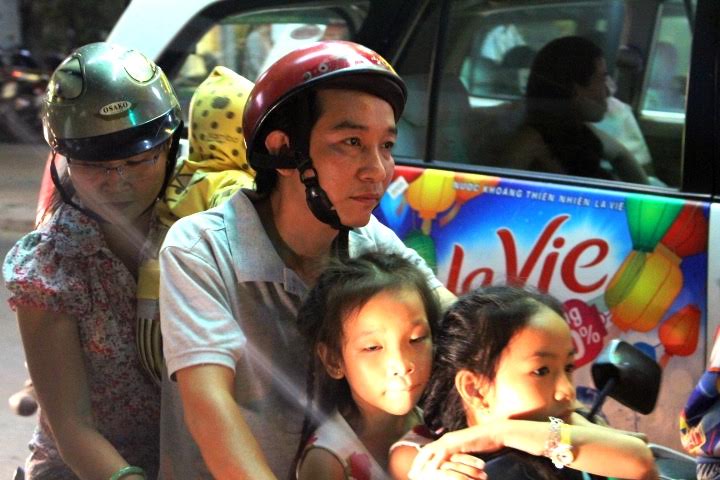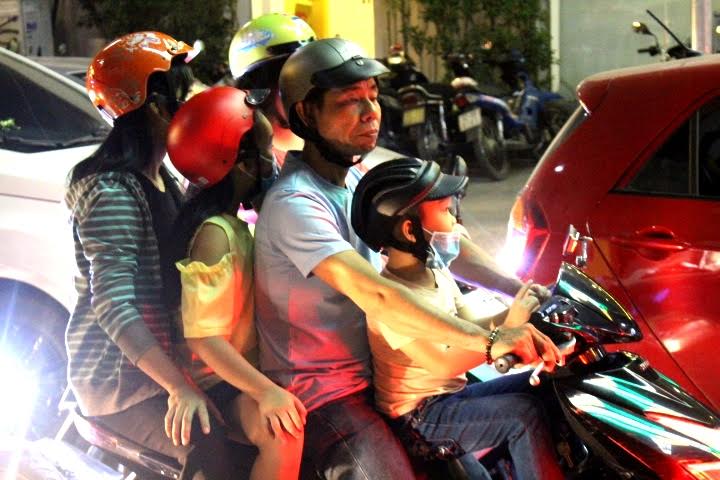 Anh Quang Nam (ngụ Bình Thạnh) cho biết vì gia đình chỉ có một xe nhưng lại có 4 người nên ngoài chở vợ, anh phải chở thêm hai con để đi dạo phố cho có không khí Tết. “Chắc năm mới, các anh Công an cũng không làm khó dễ gì đâu. Với lại mình chạy chậm, cẩn thận là được. Chứ ngày lễ, lại bỏ hai con ở nhà thì tội tụi nhỏ không ai trông”, anh Nam nói.