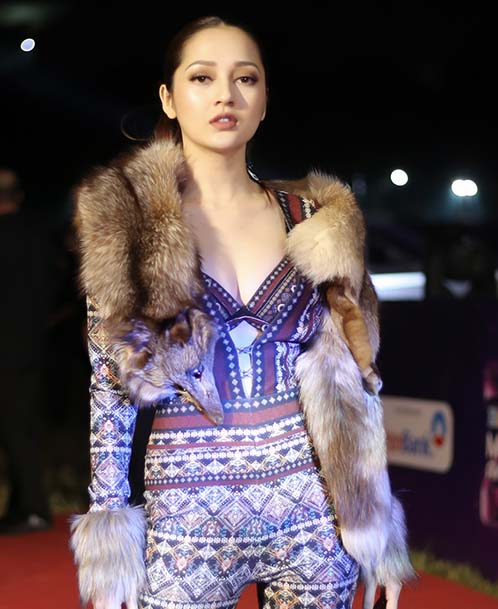 Ca sĩ Bảo Anh không kém cạnh khoe vòng một cùng chiếc khăn con chồn