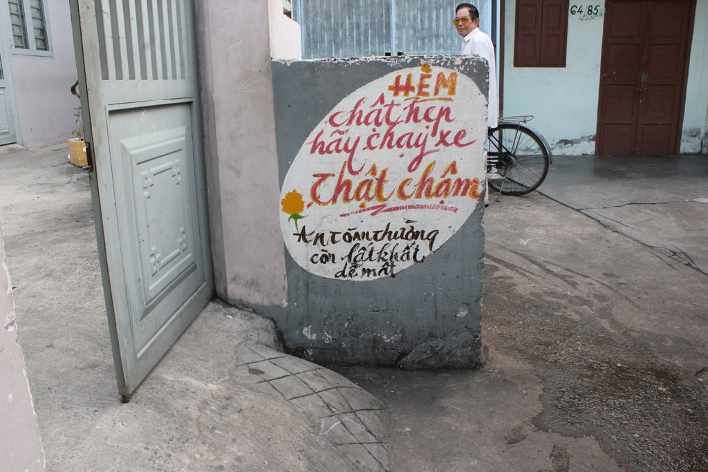 Tôi thắc mắc sao vợ chồng ông không mở một tiệm tranh nho nhỏ để kiếm thêm thu nhập, ông Minh cười khề khà rồi nói: “Tôi đâu phải họa sĩ. Tôi vẽ vì sở thích, vì niềm vui. Mà hơn nữa là tôi muốn làm cho những con hẻm nhìn sạch hơn, đẹp hơn thôi”.