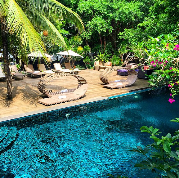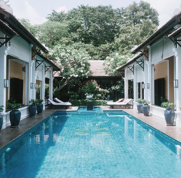 Khu nghỉ được thiết kế như một khu vườn rậm rạp, nhiều cây cối. Hồ bơi ngay sát sông, nơi bạn có thể thả mình xuống làn nước bể xanh mát, hay ngồi trên những băng ghế dài, ngắm hoàng hôn buông bên những rặng dừa phía xa.