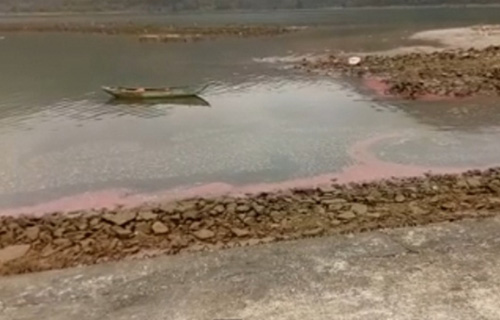 Theo ông Hùng, vào sáng 23/2, đơn vị nhận được tin báo của người dân xã Kỳ Hà báo tại cửa biển xã này xuất hiện dải nước có màu đỏ hồng dài khoảng 30m, rộng khoảng 50m.