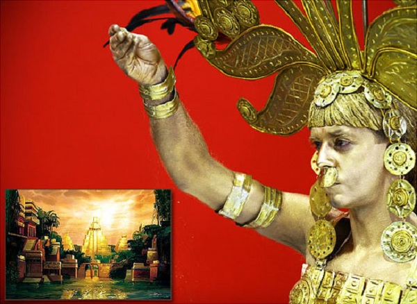 Truyền thuyết El Dorado bắt nguồn từ Muisca, những người sống ở quốc gia hiện đại Colombia từ 1000-1538 S.CN. Trong một nghi lễ cúng tế để tưởng nhớ những vị thần của họ, người trưởng bộ tộc sẽ phủ một lớp bột bằng vàng quanh mình và nhảy vào một hồ nước. Điều này chính là nguồn gốc của truyền thuyết về một thành phố vàng đã biến mất, và cuộc chinh phục của những người Tây Ban Nha cưỡi trên lưng một con ngỗng hoang dã truy đuổi vào hư vô.