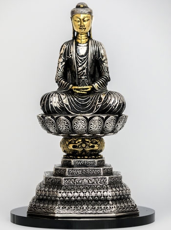 Phiên bản tượng Adiđà được các nghệ nhânchế tác bằng Bạc nguyên chất, đúc bằng công nghệ áp lực chân không khí trơ liên hoàn để đảm bảo sự nguyên khối. Tượng cao 24 cm, nặng hơn 4 kg, phần mặt, cổ, tai, bàn tay và đôi sư tử chi tiết trên tượng được mạ vàng 24 k, tượng được đặt trên đế gỗ trắc cao 5,5 cm, thông tin song ngữ (Việt – Nhật) được khắc xung quanh.