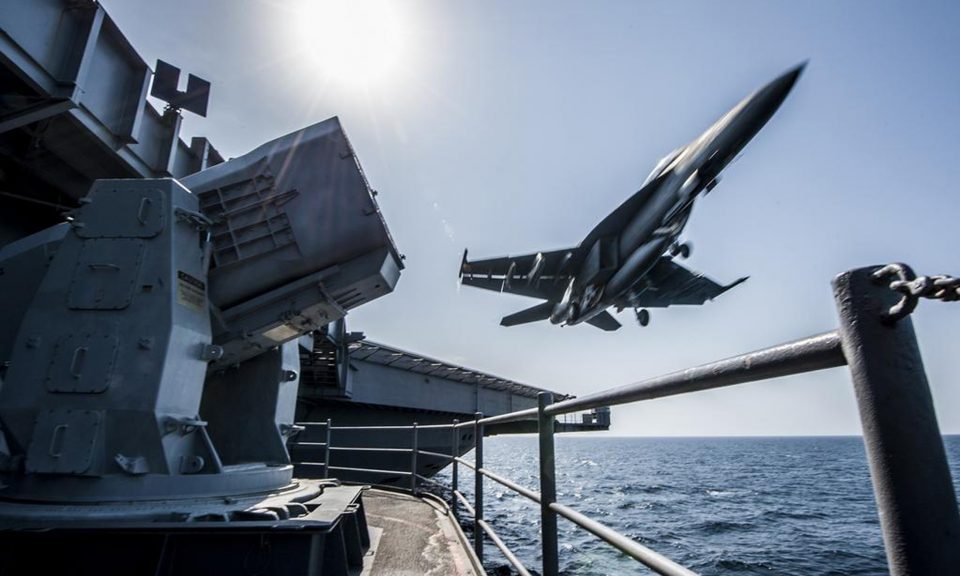 Máy bay F/A 18 xuất kích từ tàu sân bay Vinson