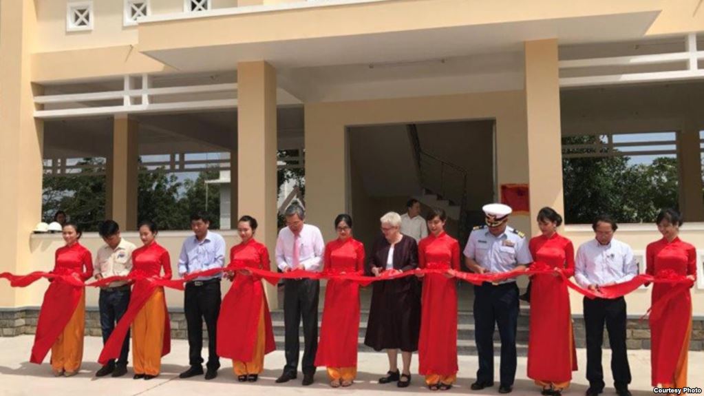 Phó Đại sứ Hoa Kỳ tại Việt Nam Susan Sutton và đại diện của Ủy ban Nhân dân tỉnh Ninh Thuận đã khai trương Trung tâm điều phối quản lý thiên tai hôm 1/3.