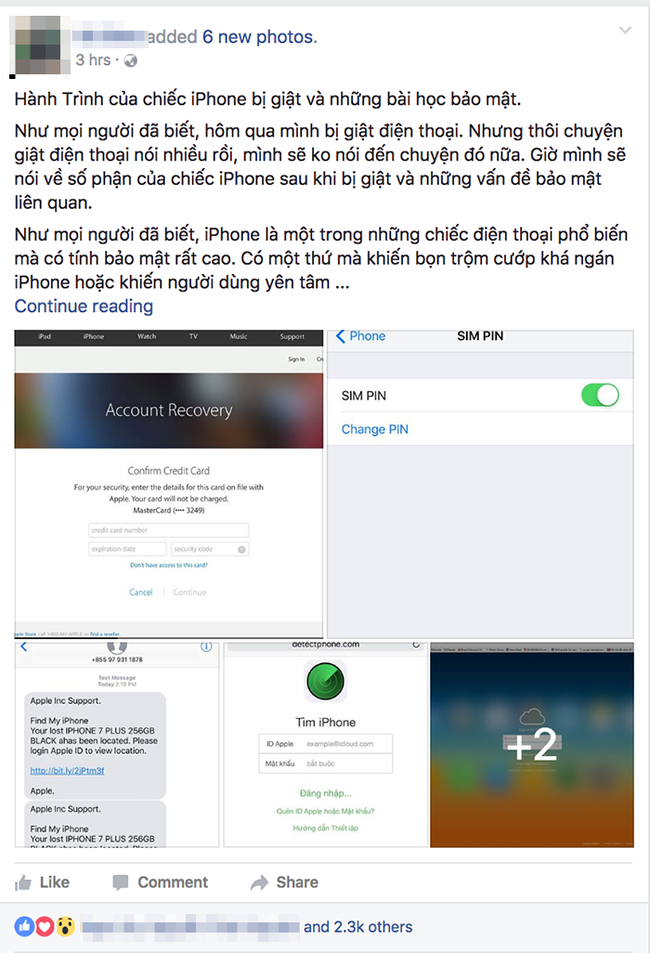 Mới đây, một người dùng Facebook có tên V.D đã chia sẻ trên trang cá nhân hành trình li kì của chiếc iPhone mà anh đang sử dụng. Cụ thể, anh đã bị cướp mất chiếc iPhone này và sau đó là liên tiếp những tình huống khiến anh phải bất ngờ. Bài post này nhanh chóng tạo nên một cơn sốt trên mạng xã hội, đồng thời cũng là hồi chuông cảnh báo cho những ai đã và đang ngó lơ việc bảo mật.