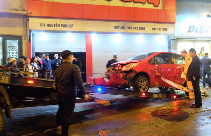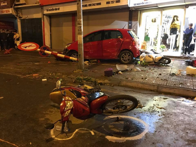 Vào khoảng 9h tối, xe ô tô Yaris mang BKS 29A-880.91 lưu thông trên đường Nguyễn Văn Cừ đã bất ngờ đổi hướng, đâm liên hoàn nhiều xe máy trên đường và nhiều người tại khu vực này.