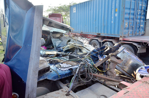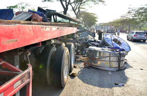 Vụ việc xảy ra ngay tại thành phố Hồ Chí Minh. Do container đã chở theo 4 cuộn thép rất lớn. Khi xuống dốc thì những quận thép đã xô vào cabin.
