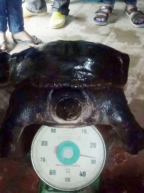 “Loài ba ba này có thể có cân nặng lên tới 40-50kg và cũng nằm trong danh mục các loài quý hiếm. Có thể thương lái buôn bán loài ba ba này để cặp ba ba sổng chuồng bò ra sông”, ông Đức nói.