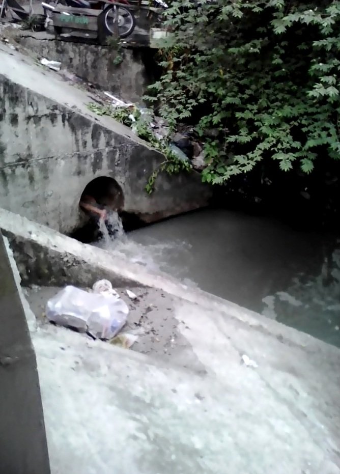 Cô gái nghi ngáo đá nhảy xuống mương nước thải tắm rồi chui vào cống nằm ngủ (Ảnh: H.Hải)