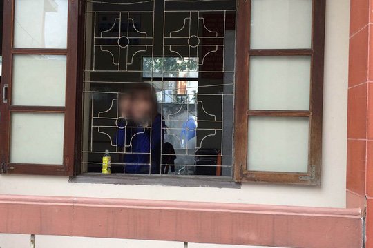 Tại trụ sở công an, Vũ Lệ H vẫn còn biểu hiện "ngáo đá". Nguồn: Người Lao Động