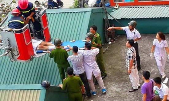 Sau khi lực lượng chức năng khuyên giải, P bớt la hét và tìm đường xuống. Tuy nhiên, do trời mưa anh này đã bị trượt ngã xuống đất. Rất may, P ngã đúng vị trí đặt đệm khí nên không ảnh hưởng đến tính mạng.