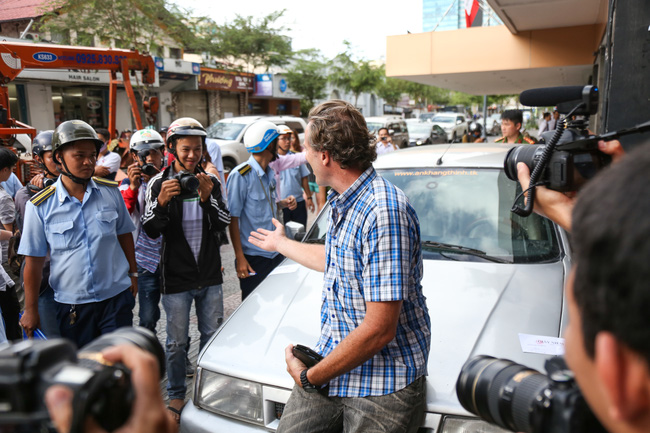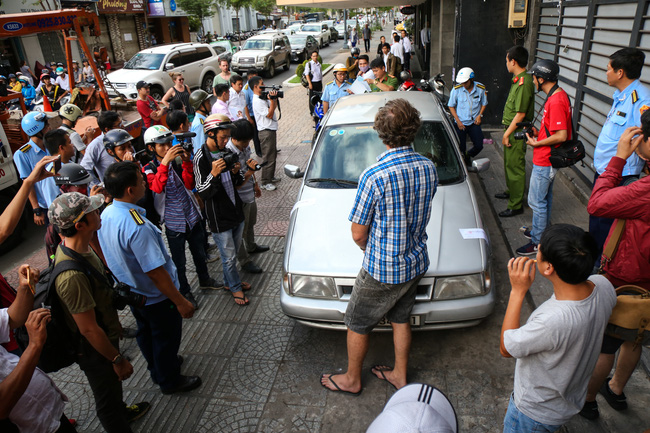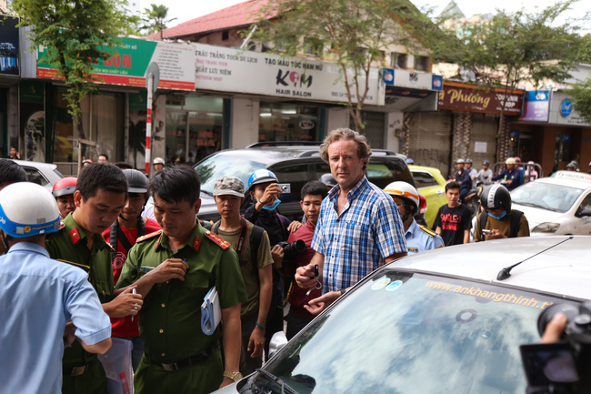 Lúc sau, người đàn ông nước ngoài (khoảng 50 tuổi) đi ra nhận là xe của mình. Du khách này đã phản ứng vì sao không thông báo trước và thắc mắc là ở đây không có biển báo cấm đậu.