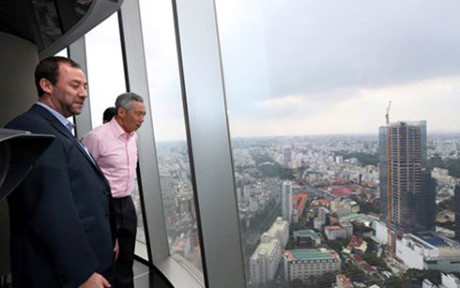 "Phóng tầm mắt ngắm TPHCM từ Saigon Skydeck trên tầng 49 Tháp tài chính Bitexco" - Ảnh Facebook của Thủ tướng Lý Hiển Long.