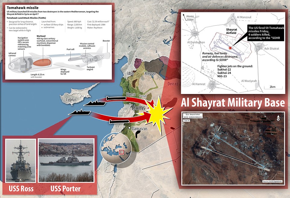 Ngày 7.4, Mỹ bất ngờ tấn công hơn 50 tên lửa hành trình vào Syria.