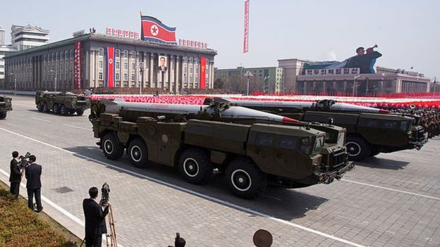 Tên lửa Triều Tiên trong cuộc duyệt binh ở Bình Nhưỡng.