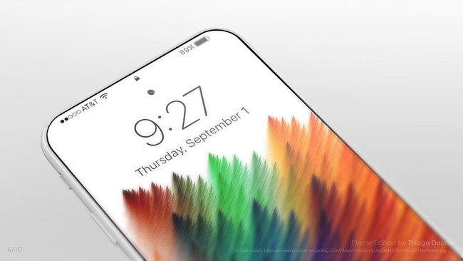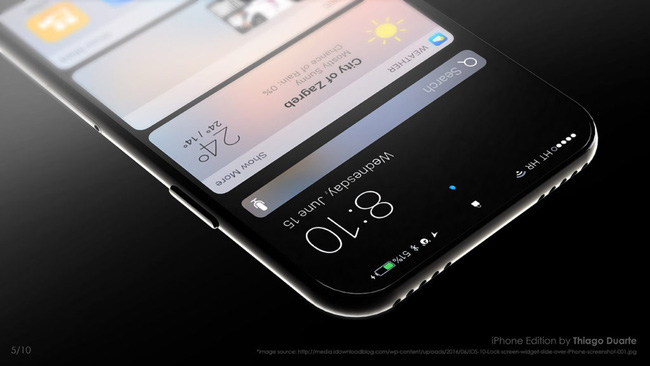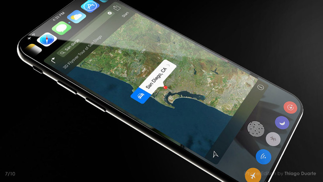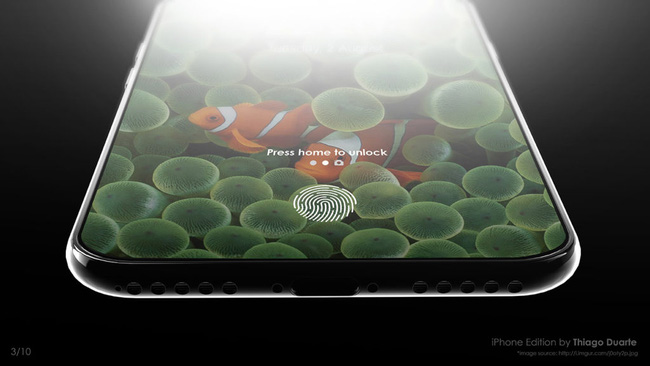Nhà thiết kế người Brazil đã hình dung một chiếc iPhone có mặt trước gần như được phủ kín hoàn toàn bằng màn hình khi viền màn hình được tối giản đến mức tối đa. Nút Home vật lý truyền thống đã được loại bỏ để giúp Apple tạo ra thiết kế này. Luc này, cảm biến vân tay được tích hợp trực tiếp bên dưới màn hình. iPhone Edition trong concept này cũng có tới bốn loa, hai được bố trí ở đỉnh máy và hai được đặt ở phía đuôi máy. Nếu điều này được hiện thức hóa, trải nghiệm âm thanh iPhone mang lại sẽ thực sự tuyệt vời.