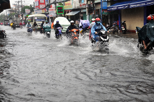 Dù mưa chỉ 15 phút nhưng đường Phan Huy Ích rơi vào cảnh ngập nặng. Một số đường như Nguyễn Văn Quá, Song Hành, Tân Thới Nhất 17 (quận 12) cũng bị ngập sâu trong cơn mưa 15 phút.