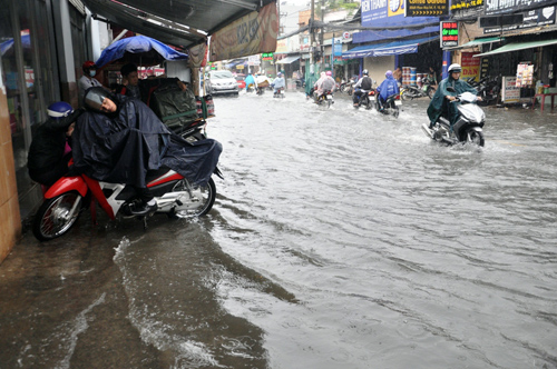 Mưa lớn vừa đổ xuống Sài Gòn khiến việc đi lại của người dân gặp khó khăn. Nhiều người đã không thế đi nên đã dừng xe và ngủ để đợi nước rút. Dù cơn mưa qua khá nhanh nhưng vẫn làm nhiều nơi ngập.