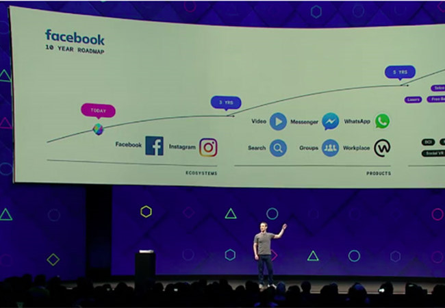 Tại hội thảo này, ông Mark Zuckerberg đã vẽ ra lộ trình phát triển cho công ty trong vòng 10 năm tới. Về cơ bản, ông Zuckerberg đã nêu ra 3 giai đoạn mà Facebook sẽ hướng tới. Đầu tiên, Facebook sẽ dành thời gian để phát triển các công nghệ đột phá. Sau đó, công ty sẽ sản xuất các sản phẩm dựa trên các công nghệ này. Cuối cùng, Facebook sẽ “ném” các sản phẩm vào trong một hệ sinh thái để các nhà lập trình và các công ty bên ngoài có thể sử dụng chúng để phát triển hoạt động kinh doanh riêng.
