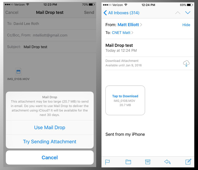 Mail Drop là một tính năng hữu ích của của iOS mỗi khi người dùng muốn gửi email có kèm tập tin nặng từ iPhone.