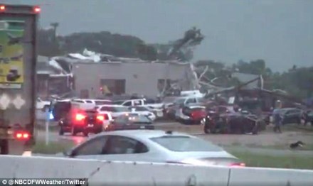 Trận lốc xoáy ập vào Canton và khu vực cách Dallas khoảng 80km khiến cây đổ, nhà tốc mái, nhiều xe ô tô bị lật.