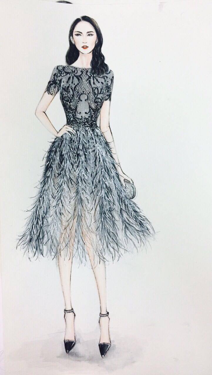 Bản phác thảo thiết kế chiếc váy này trông đẹp và tôn dáng người mẫu hơn rất nhiều
