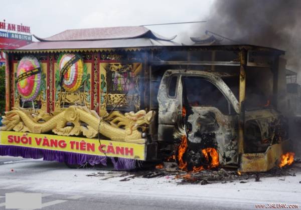 Sáng nay 10/5, một chiếc xe chở linh cữu đi hỏa táng thì lại bốc cháy ngùn ngụt trên quốc lộ 1A. Rất may không có ai bị thương. Theo điều tra ban đầu thì xe này đã hết hạn kiểm định từ tháng 4/2016.
