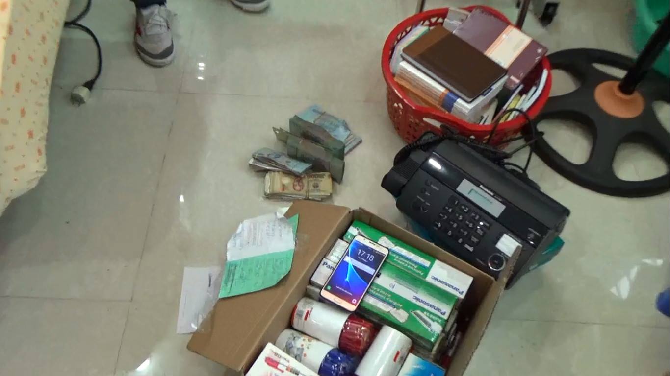 Tang vật thu giữ từ đường dây thầu đề gồm: hơn 1 tỷ đồng tiền mặt, 10.000 USD, 13 miếng vàng 1 lượng (SJC), 1 két sắt niêm phong, 29 điện thoại cùng các máy móc, phương tiện và giấy tờ liên quan.