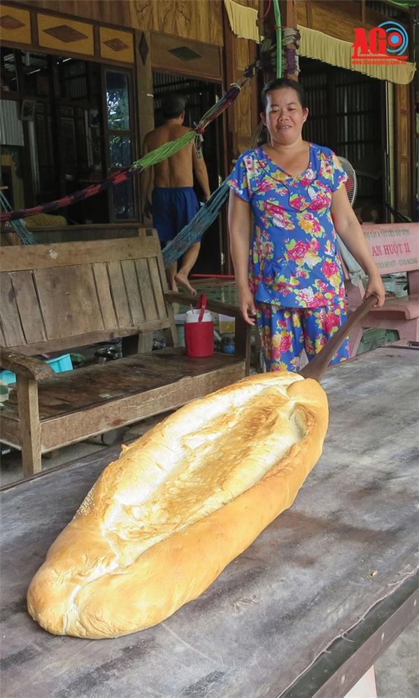 Mỗi lần có dịp ghé qua khu vực Châu Đốc (An Giang), khách du lịch không khỏi bị thu hút bởi chiếc bánh mì khổng lồ thường được mua làm quà tặng cho bạn bè, người thân. Bánh mì to gấp nhiều lần một ổ bánh mì thông thường và to quá người một đứa trẻ, đã trở thành món ăn được du khách săn lùng mỗi khi có dịp ghé qua nơi đây.