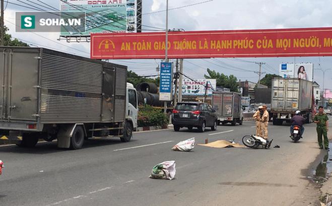 Tại hiện trường, thi thể nạn nhân nằm bên cạnh chiếc xe máy hư hỏng nặng. Xe container chạy thêm một đoạn khoảng 20m thì dừng lại.