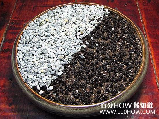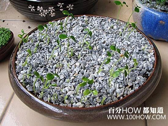 ▼ Dùng đá trắng nhỏ phủ một lớp mỏng và đều lên trên cùng, sau đó tiếp tục phun nước cho đất ướt đều. Tiếp theo, hãy nhớ xịt nước tưới hàng ngày và chờ hạt giống nảy mầm.