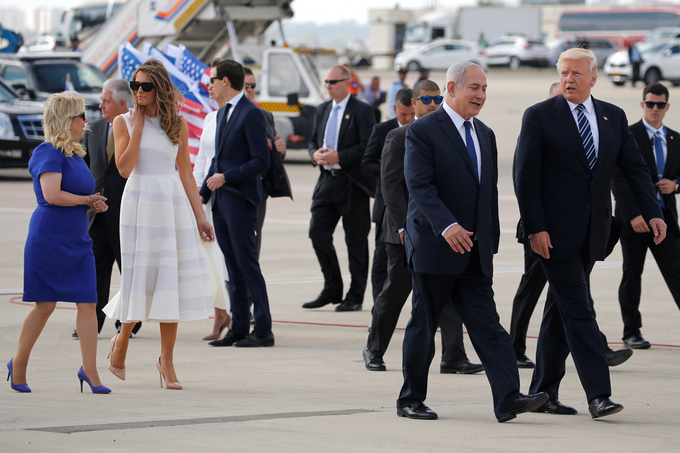 Đệ nhất phu nhân Mỹ mặc bộ đầm đen cùng Tổng thống Trump chuẩn bị dự bữa tối cùng Thủ tướng Isarel Benjamin Netanyahu và phu nhân ở Jerusalem ngày 22/5.