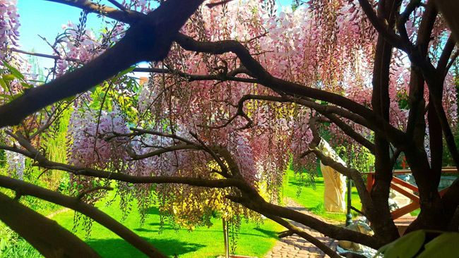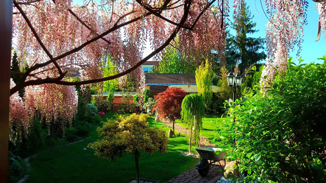 Bạn sẽ như cảm thấy mình lạc vào Thiên đường. Giàn hoa tử đằng tím hồng đẹp lung linh phủ kín trước hiên nhà của một bà mẹ Việt tại Séc. Cùng thưởng thức tác phẩm nghệ thuật sau hẳn bạn sẽ thích mê!