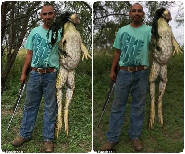 Tương tự đối với trường hợp con ếch của Rangel và anh bạn thợ săn. Nếu để ý, bạn sẽ thấy anh thợ săn kia có tư thế "dí" con ếch vào gần ống kính. Nhờ vậy, con ếch trông sẽ to hơn kích thước thực của nó rất nhiều.