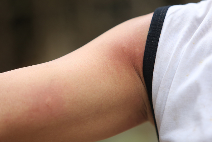 Hậu quả không tránh khỏi sau nhiều giờ đàn ong đậu trên người đó là những vết chích sưng tấy.