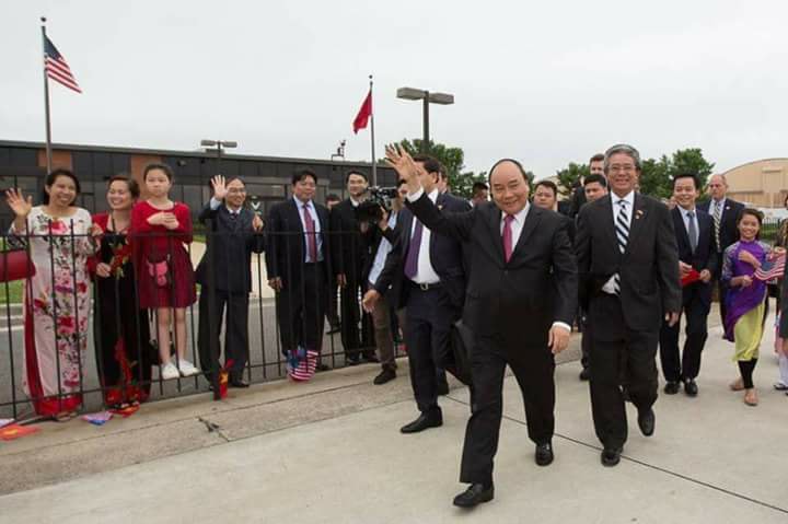 Trong chuyến thăm của Thủ tướng Nguyễn Xuân Phúc đến Mỹ.Đoàn người Việt đã ra chào đón Thủ tướng nhưng lại vứt cờ đầy đường mặc dù đang ở ngay trên đất Mỹ.Cờ đỏ sao vàng được vứt đầy dưới chân mà Thủ tướng đang chụp ảnh nên có lẽ không để ý.