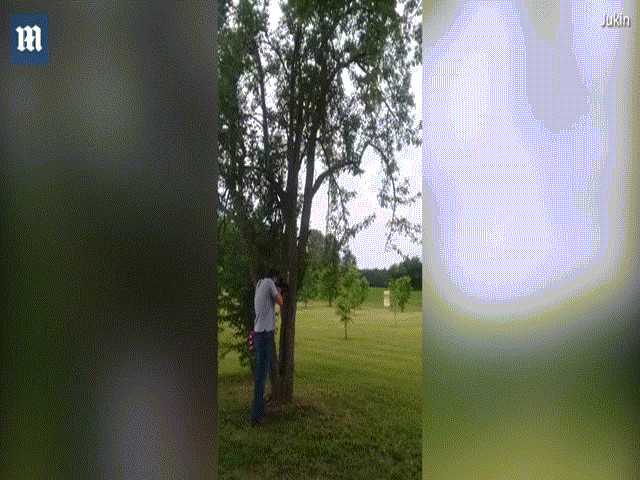 Theo Daily Mail, dường như người đàn ông đang sử dụng khẩu súng trường M-16 và tủ lạnh ở cách đó ít nhất 45m.