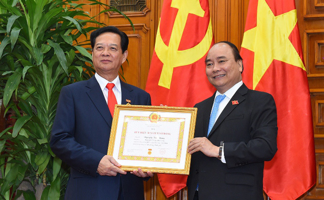 Trao Huy hiệu 50 năm tuổi Đảng cho ông Nguyễn Tấn Dũng, nguyên Thủ tướng Chính phủ.