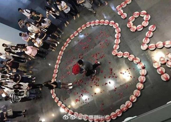 Vietbf.com - Một chàng trai trẻ người Trung Quốc đã mua 99 hộp xếp lại thành hình trái tim để cầu hôn người bạn gái thử vận may, nhưng chàng trai không ngờ mình lại thành công vì nàng cảm động đã chấp nhận lời cầu hôn.