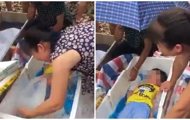 Những ngày gần đây, các cư dân mạng hết sức bàng hoàng trước đoạn video ghi lại cảnh tượng một bé trai nằm trong thùng xốp chứa đầy đá lạnh, xung quanh là người thân đau xót khóc thương.