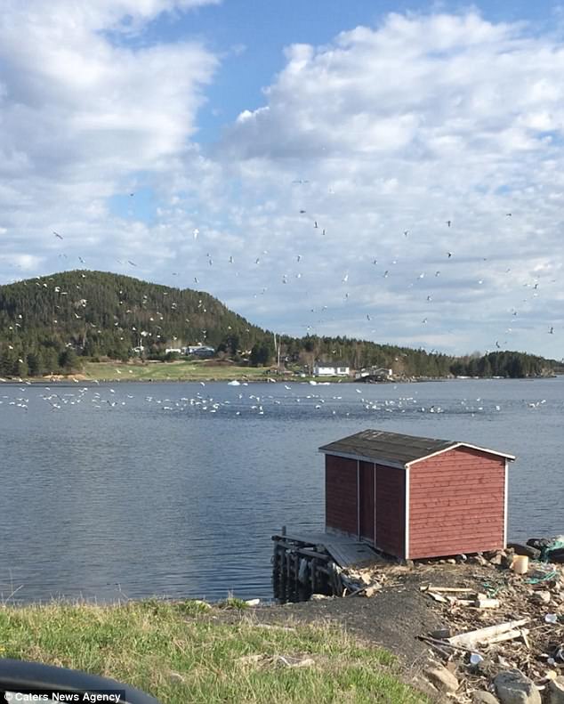 Theo Daily Mail, trong đoạn video được quay gần bờ, người xem có thể thấy rõ những con chim lượn qua lại ở khu vực vịnh Notre Dame, Summerford, Canada.
