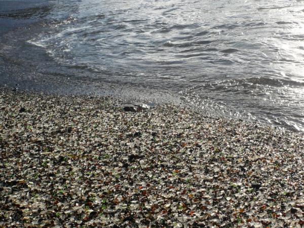 Bãi biển Glass Beach ở vùng Fort Bragg, bang California, Mỹ nổi tiếng bởi những viên đá nhiều màu sắc khác nhau tựa như những viên pha lê tuyệt đẹp.(Ảnh: Wikimedia Commons)