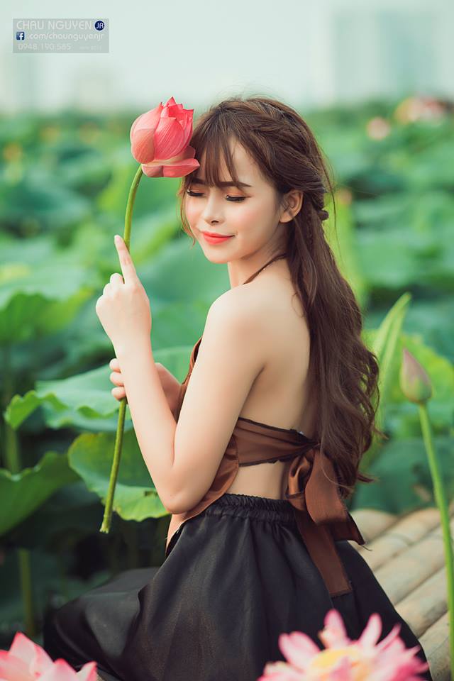 Mặc áo yếm chụp ảnh bên sen đốn tim các chàng trai cần gì phải hở hang