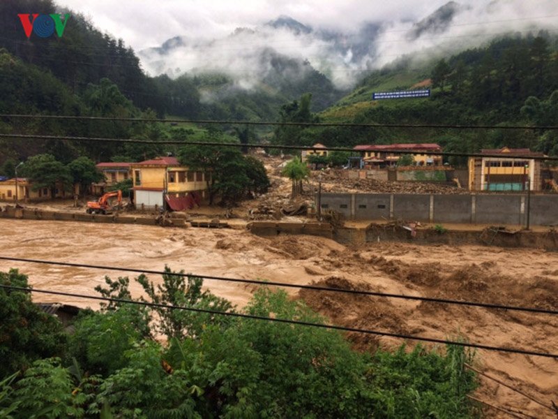 Mưa lớn, gây lũ quét đã cuốn trôi 10 người dân, trong đó 5 người đã tìm thấy thi thể, 5 người vẫn đang mất tích. Ảnh: VOV