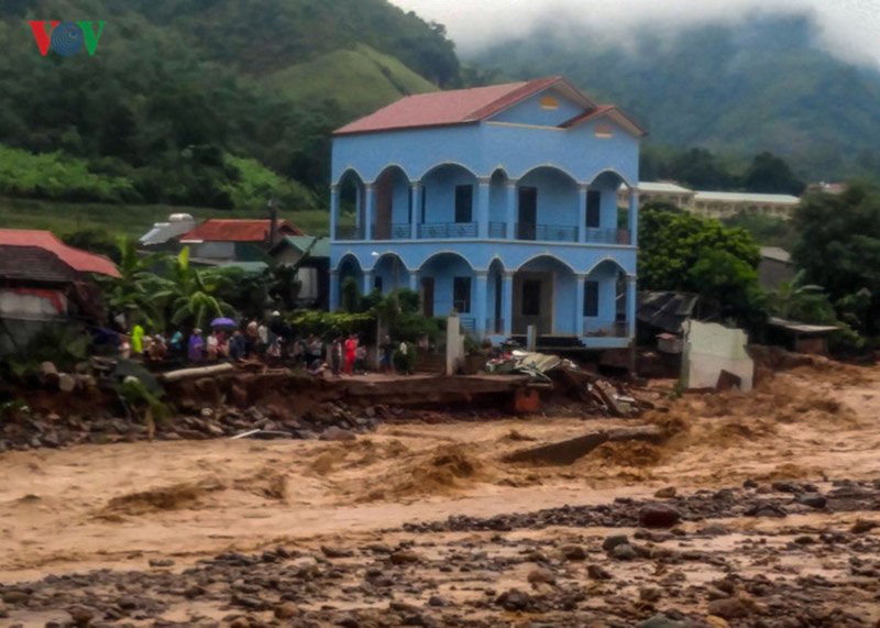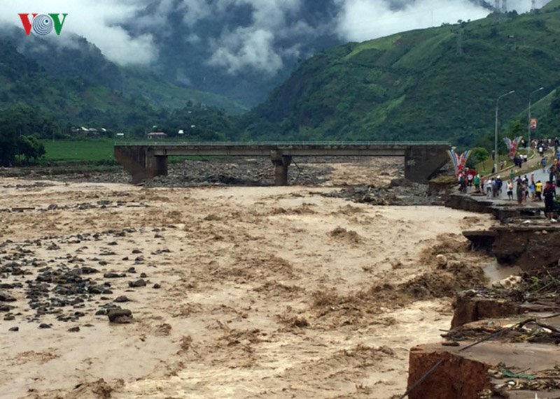 Lũ quét cuốn phăng mọi thứ trên đường đi khiến nhiều nơi bị chia cắt. Ảnh:VOV