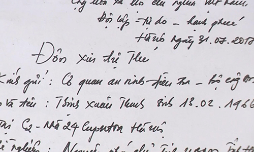 "Do lo sợ, suy nghĩ không hết, tôi đã quyết định trốn lại Đức. Thời gian này cuộc sống trốn tránh, bấp bênh, luôn lo sợ. Được sự động viên của gia đình và bạn bè tôi đã về Việt Nam và ra đầu thú tại cơ quan an ninh điều tra để được hưởng sự khoan hồng", đơn có đoạn.