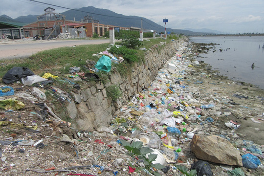 Đầm Nại - nơi có tiềm năng khai thác du lịch biển - cũng ngổn ngang rác